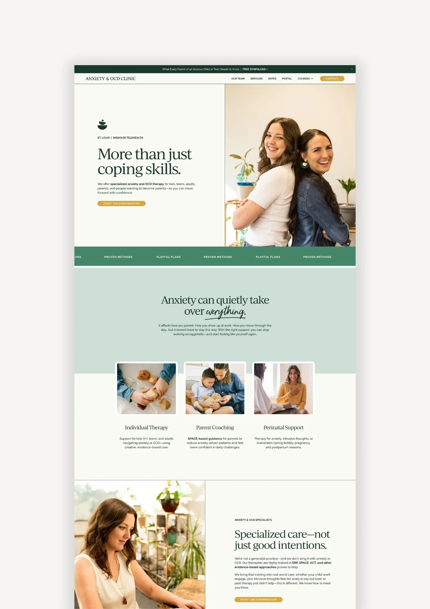 This Squarespace website for the Anxiety & OCD Clinic balances professional polish with a warm, approachable vibe. Based in St. Louis, this group practice specializes in therapy for kids, teens, and parents navigating anxiety, OCD, and related challenges.