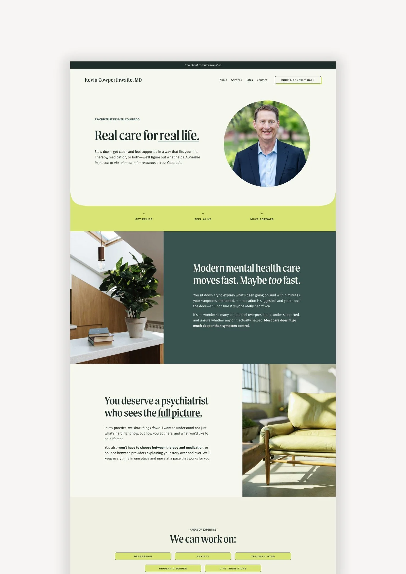 7. Kevin Cowperthwaite, MD: Squarespace Website for a Psychiatrist